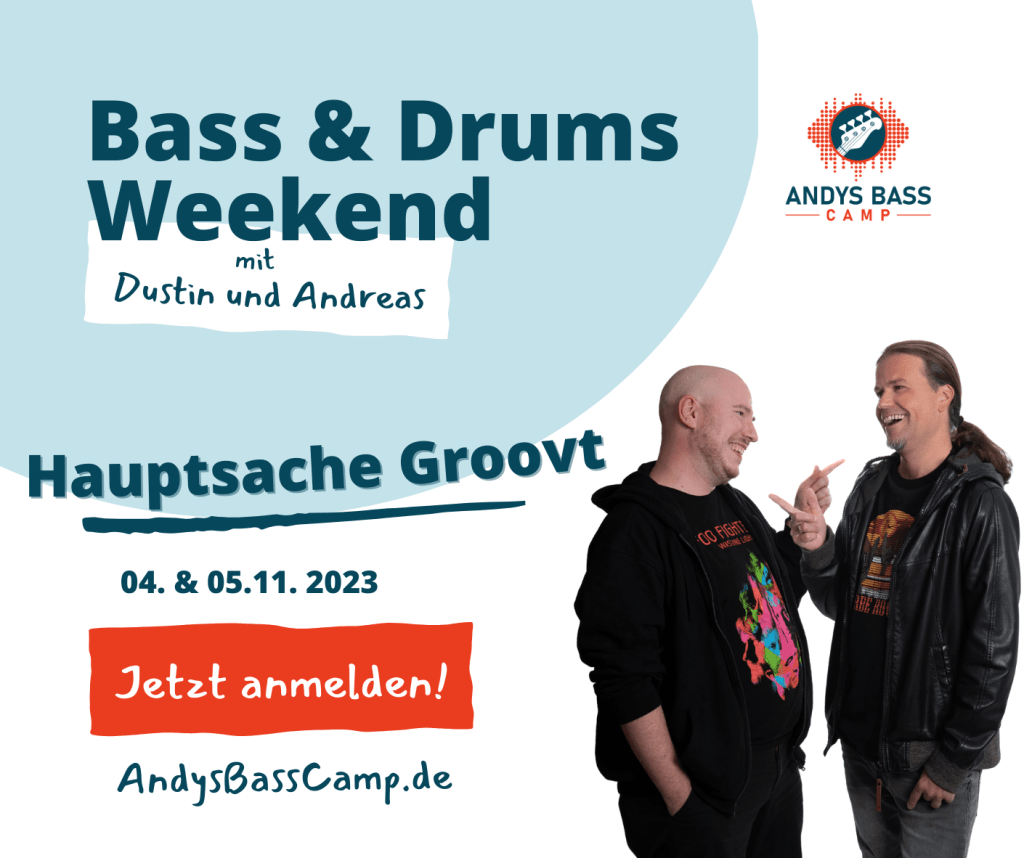 Die Bassplätze sind schon alle vergeben, aber lass dich gerne unverbindlich vormerken, um beim nächsten Mal in der PolePosition zu sein. https://andysbasscamp.de/produkt/bass-drums-weekend/